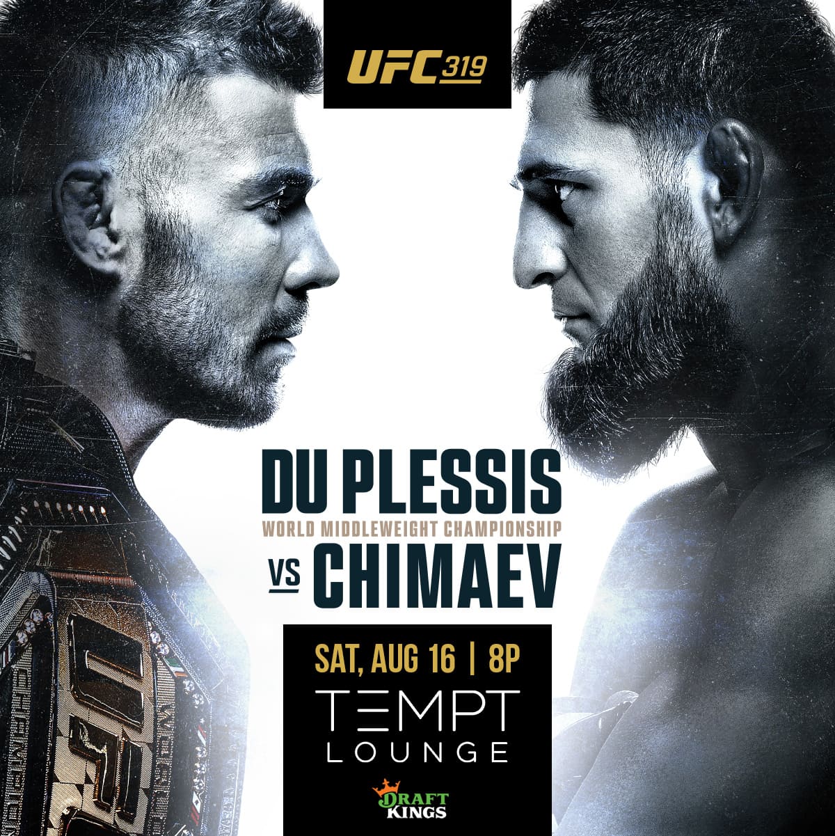 Du Plessis defends his middleweight title for the third time, having won it against Sean Strickland at UFC 297 and defended it against Adesanya at UFC 305. He recently defeated Strickland again at UFC 312. Chimaev is coming off a first-round submission of Robert Whittaker at UFC 308 and is seen as a future champion.