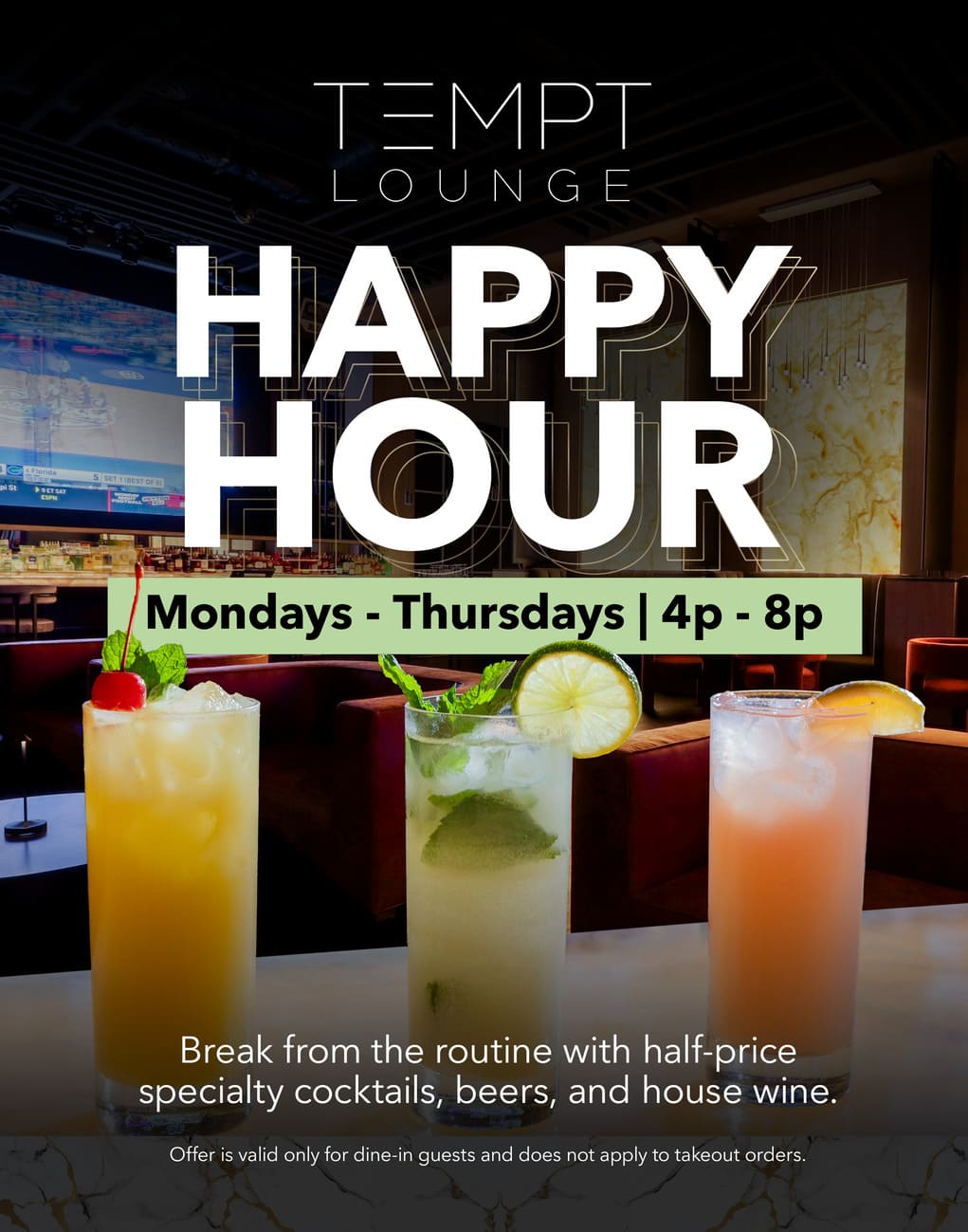 TEMPT Lounge will lure you in with its stylish décor, plush seating, ambient lighting, expertly crafted cocktails, and a cutting-edge sound system to host live performances by the best local acts and DJs. Located on the casino floor, directly across from the energizing lights and sounds of the slot machines, the lounge offers an escape from the ordinary, a place to unwind and indulge.