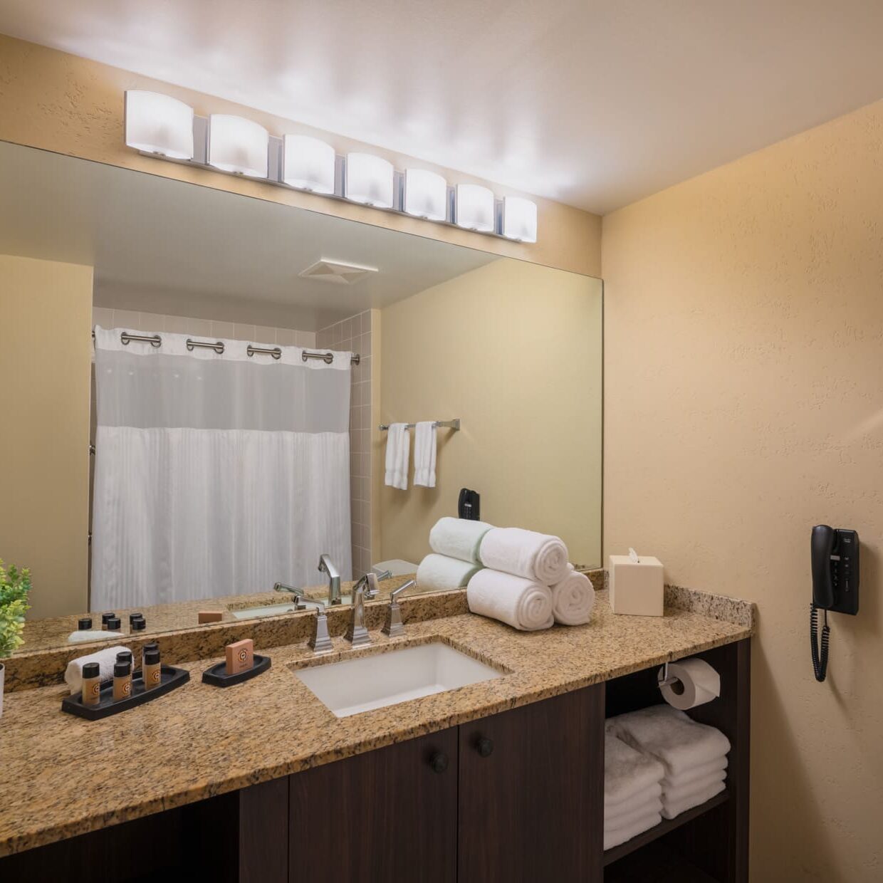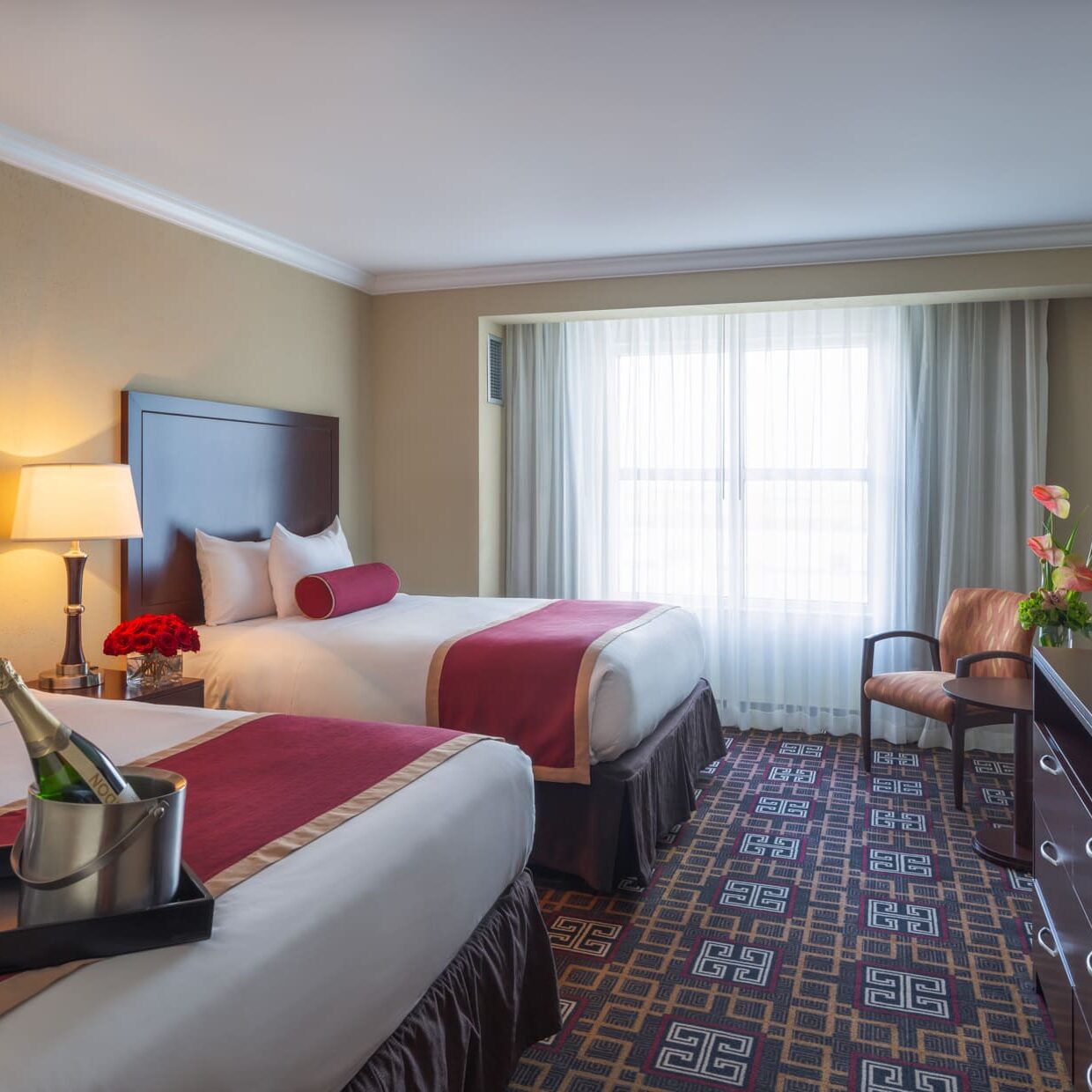 This room features two queen beds, a spacious bathroom, and a 50" TV, ideal for relaxing and gearing up for the upcoming excitement.